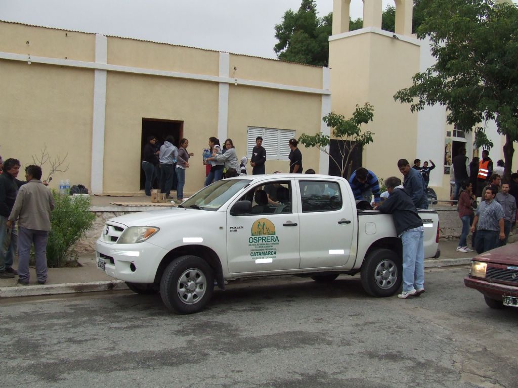 Es así que ayer por la tarde los delegados provinciales de Uatre, Ramón Ferreyra, y de Osprera, Oscar Ogas; viajaron hasta la localidad de Siján en Pomán y realizaron la entrega de 150 litros de leche larga vida, 150 litros de agua mineral; 55 paquetes de velas y una cantidad más que importante de ropa que serán repartidos entre las familias afectadas por este alud de lodo y piedra que no dejó prácticamente nada a su paso, destruyendo viviendas, plantaciones de vid, nogales, zapallo, especias etc.