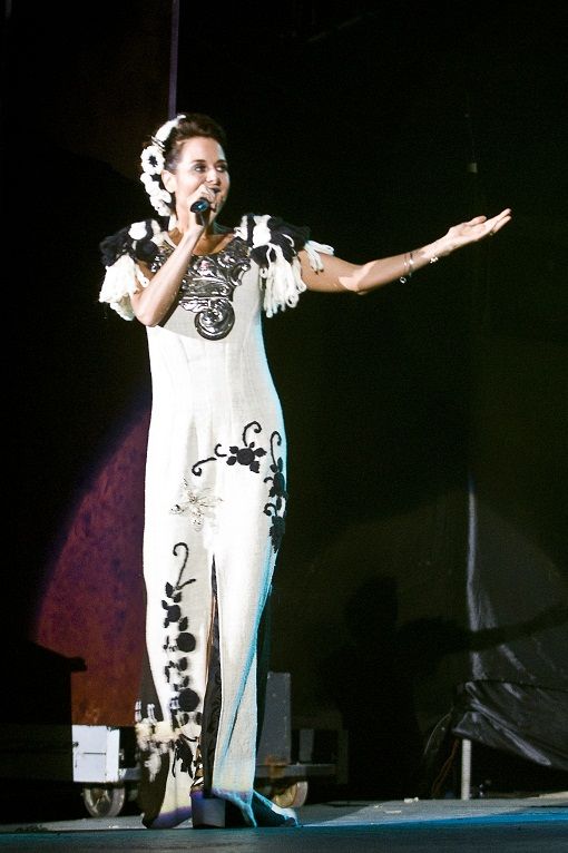 la presentadora del tradicional festival, Maia Sasovsky lució un modelo de Páez,