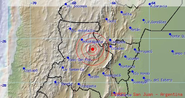 con epicentro en el Oeste provincial, al norte de Belén y al sur de Antofagasta