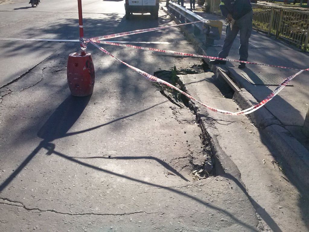 lluvia, cedió su carpeta asfáltica, sobre el puente Fariñango ubicado en Av.