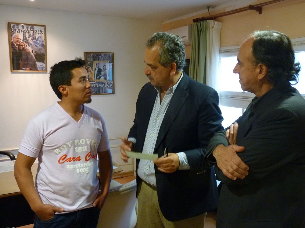 En el momento de la entrega del cheque, el ministro Barros