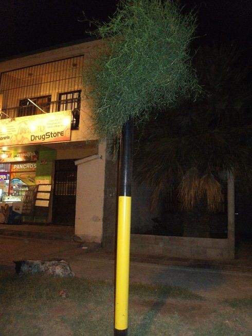 Llama la atención un semiposte de semáforo, el cual está