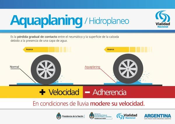 recomienda reducir la velocidad para evitar el "hidroplaneo” de los vehículos