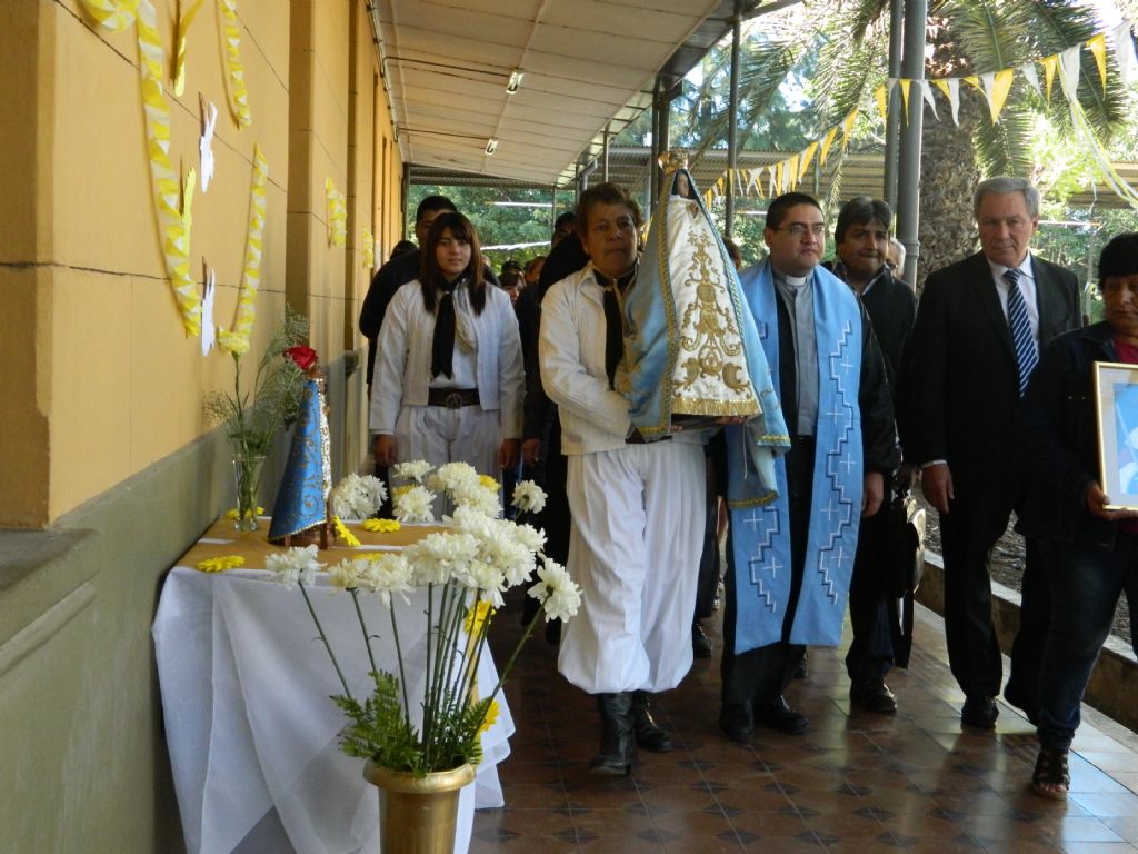 la Catedral Basílicaen brazos del P. Santiago Granillo, Capellán del Santuario Mariano, y escoltada