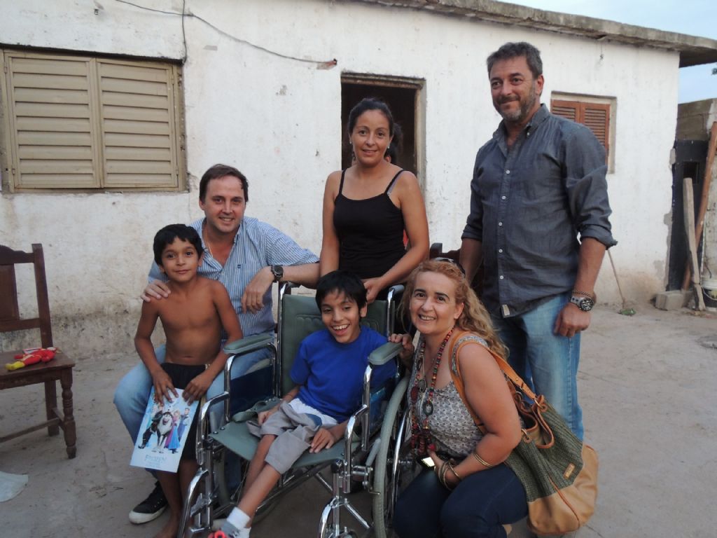 el niño -que padece discapacidad motriz, con una parálisis casi total del