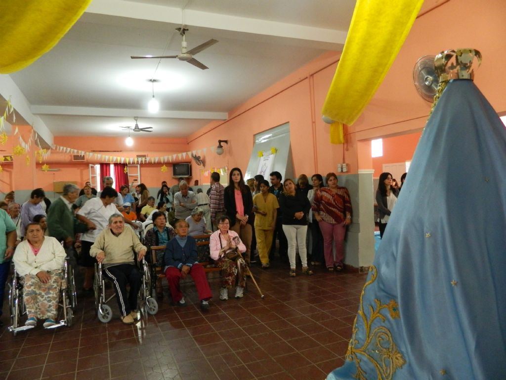 la Sagrada Imagenrecibió el saludo emocionado de los abuelos y de quienes tienen la sagrada
