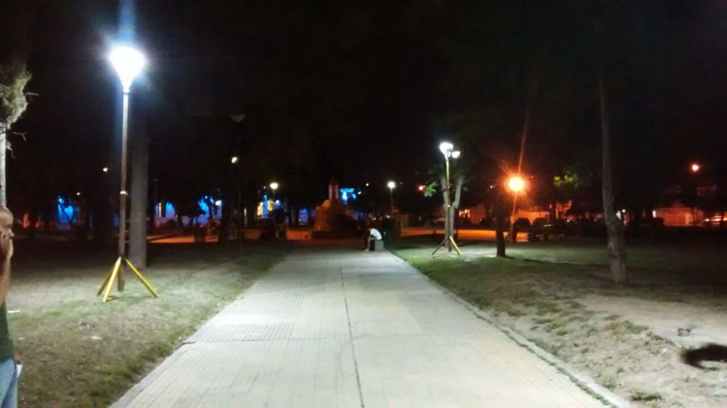 Los diseños de iluminación realizados por el municipio fueron puestos a prueba con luminarias móviles que se colocaron en distintos puntos de la plaza encendidas en forma alterna y simultánea con las luminarias que ya se encuentran instaladas en el lugar.