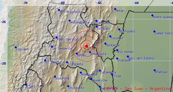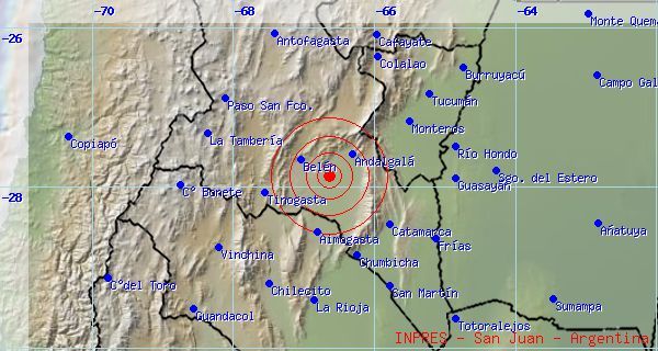 Instituto Nacional de Prevención Sísmica, este jueves se registraron dos