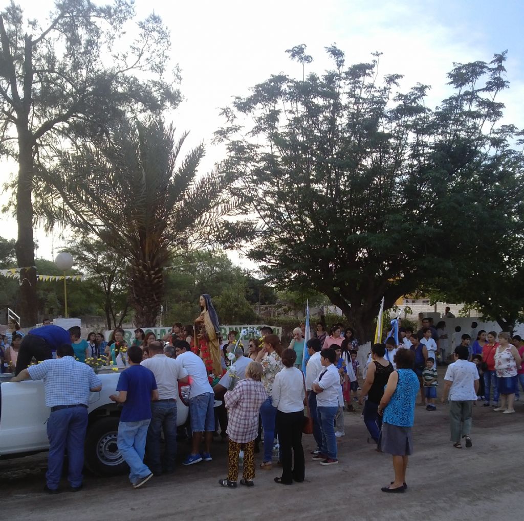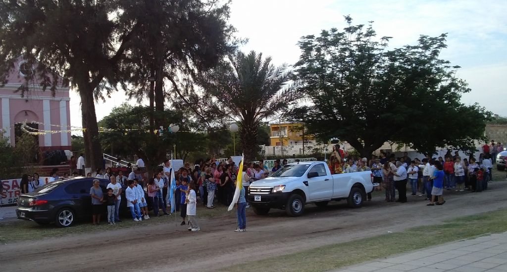 párroco, delegaciones escolares con sus abanderados, comunidades vecinas y una