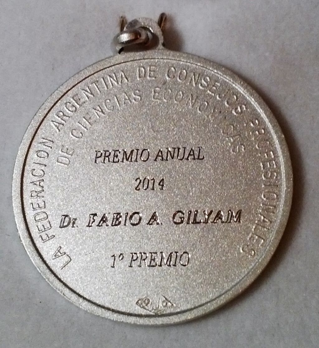 La distinción fue otorgada por la Federación Argentina de Consejos Profesionales de Ciencias Económicas a los mejores trabajos presentados. En el caso del contador Gilyam, fue premiado por su trabajo presentado en el área Administración con el tema Emprendedurismo, casos exitosos, "El Cooperativismo Artesanal – Las Arañitas Hilanderas”, grupo cooperativo de trabajo de tejedoras del departamento Belén.