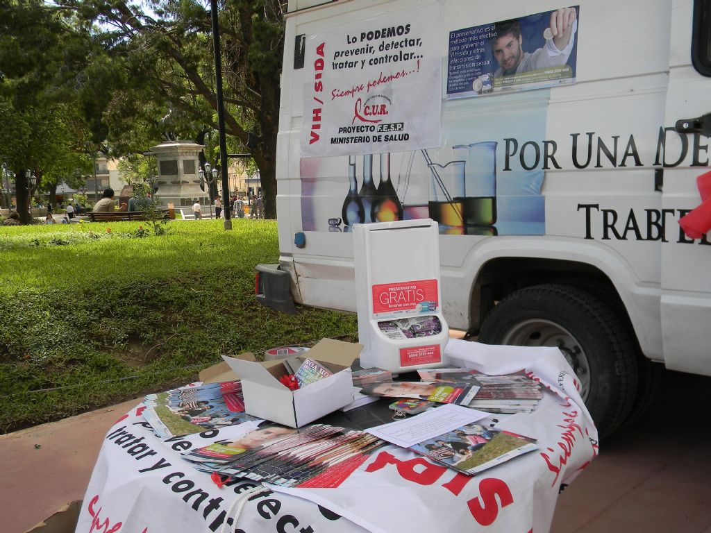 folletería, preservativos y testeos en el laboratorio móvil que estuvo apostado