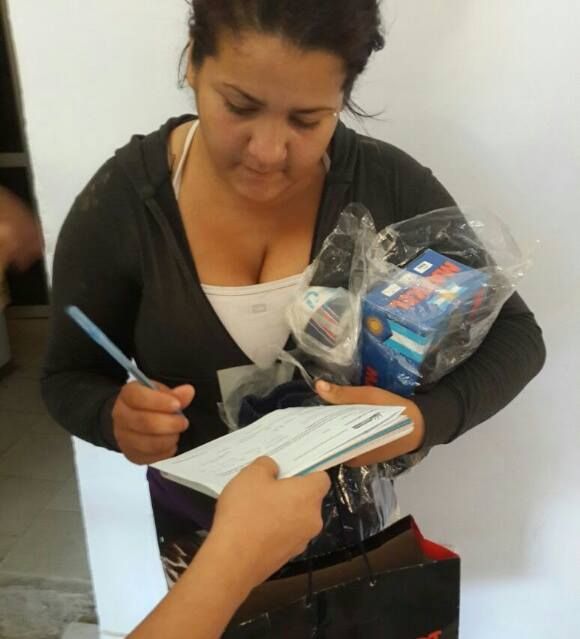 Puntualmente, la mujer recibió zapatillas e indumentaria