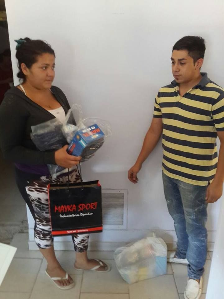 para sus tres pequeños hijos, además de alimentos para paliar la situación por