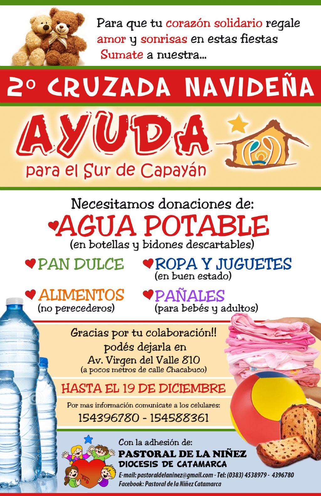 descartables, alimentos no perecederos, pan dulce, ropa y juguetes en buen