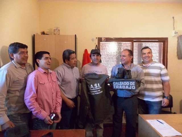 Haciendo caso a uno de los objetivos impuestos por el ministro de Servicios Públicos, Gustavo Aparicio, los trabajadores del interior provincial están siendo equipados con la indumentaria requerida para los trabajos que realizan. En este marco el director de la DASI, Eduardo Álvarez, junto a otros funcionarios del gobierno provincial, entregó ayer ropa y calzado a los empleados de la divisional de Chumbicha. También se otorgó un total de 500 metros de cañeríade P.V.C Ø 90 para realizar obra de renovación parcial y mejoramiento del servicio de agua potable en la zona norte chumbichana.