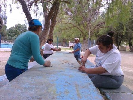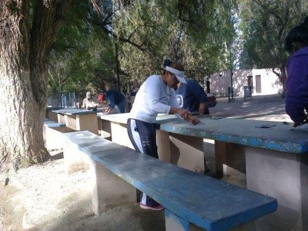 limpieza y pintado de mesas y bancos, como también el acondicionamiento de