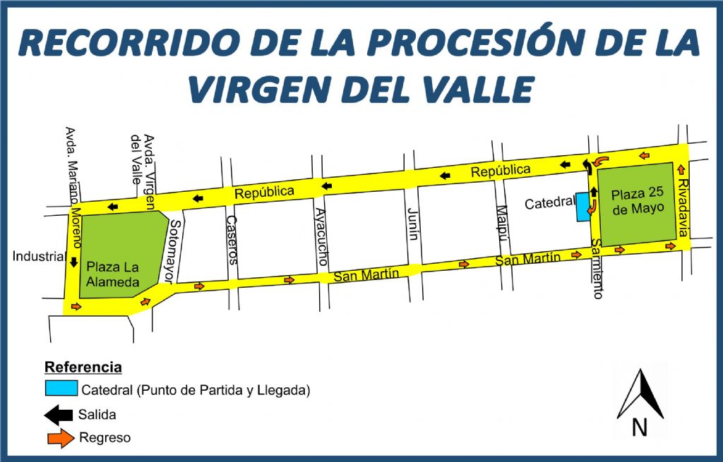 columna procesional, los peregrinos se ordenarán sobre calle Sarmiento, para