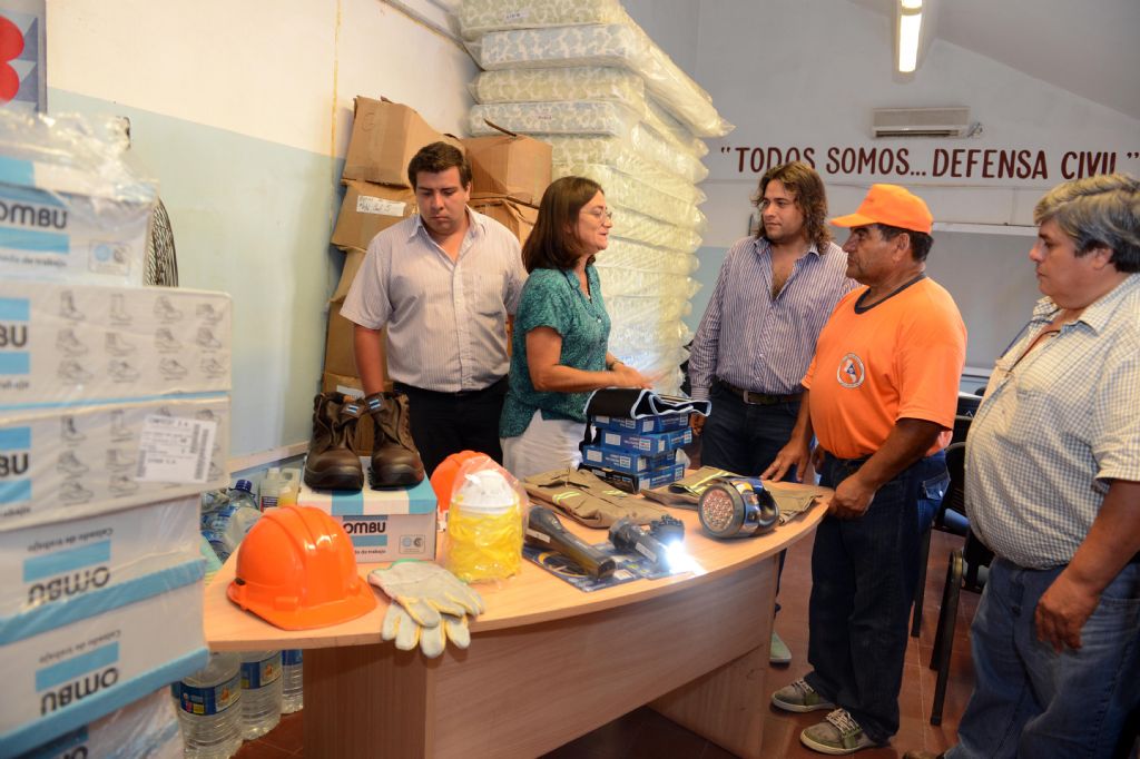 Lucía entregó botas especiales, guantes, uniformes, barbijos, fajas, linternas y otros elementos de gran importancia para los equipos que actúan en situaciones de emergencia.