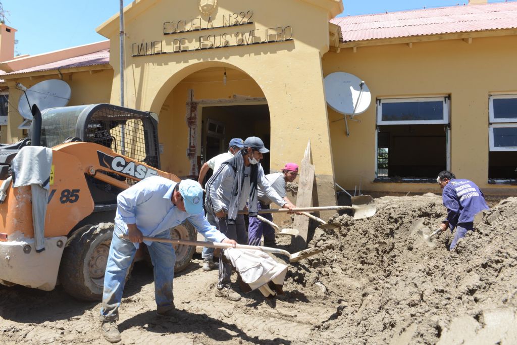 Además del despeje de calles y accesos de Siján, las tareas incluyeron la limpieza de viviendas y edificios públicos, algunos de los cuales tenían más de un metro de material aluvional en su interior.