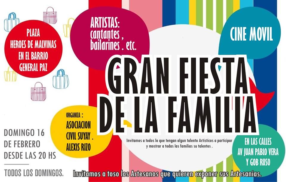 La Gran Fiesta de la Familia, es una jornada que comienza este próximo domingo, pero está pensada para ser repetida todos los domingos con la idea de promover el encuentro entre el vecino y las familias del lugar.