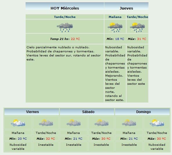 Según el organismo nacional, habrá nubosidad variable, probabilidad de chaparrones y tormentas aisladas. El clima irá mejorando, con vientos leves del sector norte, rotando al sector este.