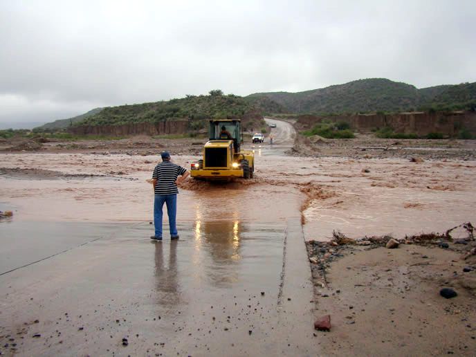 Fiambalá – Las Grutas: Transitable. Precaución por la presencia de equipos y personal vial que realizan trabajos de reparación de erosiones en zona de camino, causadas por las lluvias.