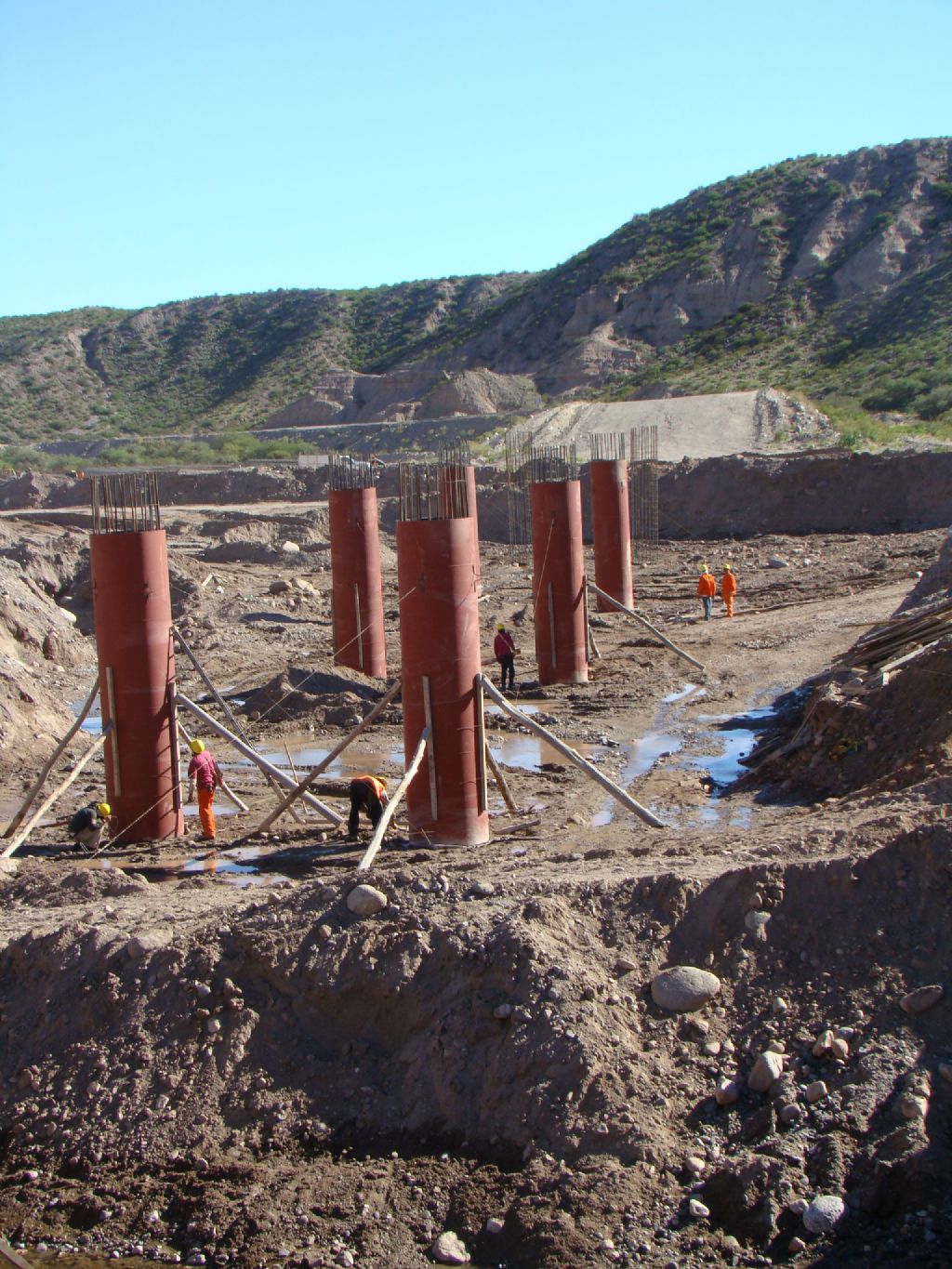 están construyendo las vigas y comenzaron a levantarse las bases del puente.