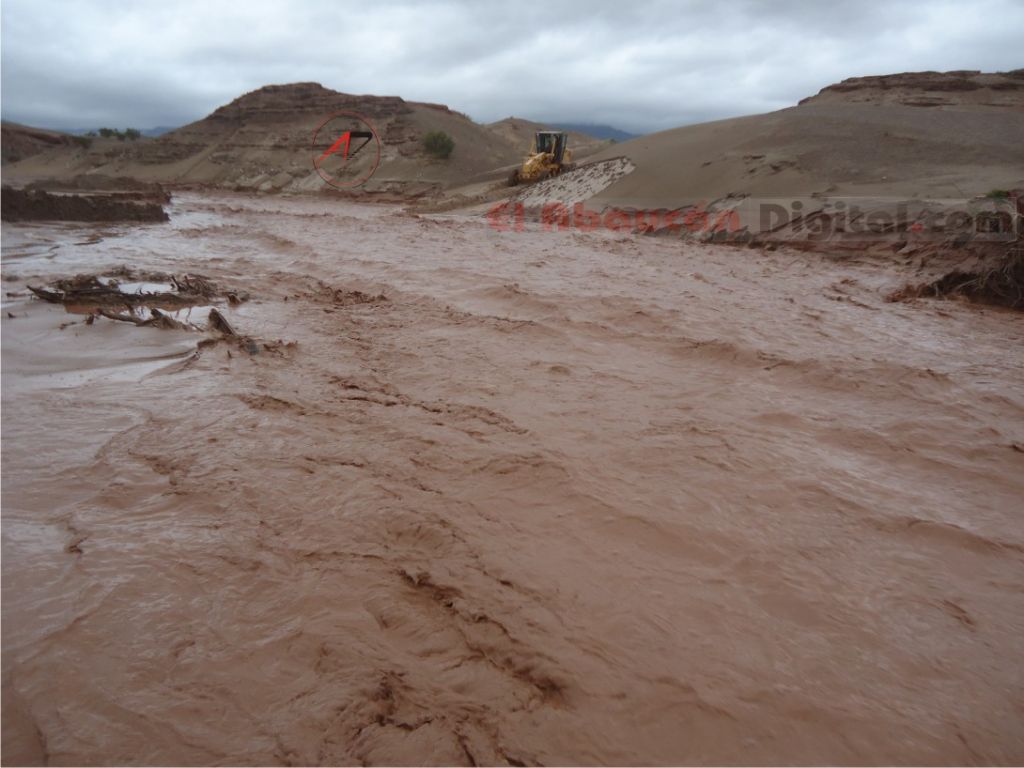 El cruce del Rio Abaucán hacia el complejo termal se encuentra intransitable. Por el momento únicamente las maquinas del municipio trabajar para poder habilitar el paso de cuadrillas de obreros que van como destino hacia Las Termas, lugar donde la creciente tapó con lodo cerca de una decena de piletones del sector de aguas calientes.