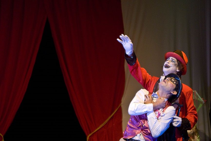 21 hs: "Qué te trae, qué te lleva” (Jujuy) Juglarías circo teatro – Vicario Segura 1.080.Sinopsis de la obra: Los actores se lanzan al escenario con la intención de contar sus historias. Se preparan en mejora de la actuación, los motiva el suspenderse en el tiempo escénico pero padecen el regreso continuo de sentirse desnudos sobre el escenario. Asumen como tarea habitar otros seres, los personajes. Qué te trae qué te lleva es la historia de Blanca, de Alicia, de Él, de Ella, de la Mujer especialista en ratas, de la mujer que quiere bailar, de la chica de vestido, de la mujer que canta, del hombre que canta, de la mujer en la silla, de la bailarina. Cuatro actores vestidos de actores que quieren convivir en la misma historia.