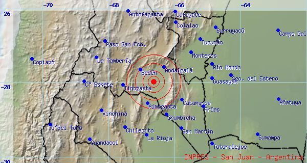 La página del Instituto Nacional de Prevención Sísmica (INPRES) informó sobre un sismo registrado ayer en Catamarca, que tuvo una magnitud de 4,1° en la escala de Richter. Si bien fue el movimiento telúrico más fuerte sentido en la zona, seguido por uno de 3,8° en San Juan, en la provincia no hubo repercusiones.