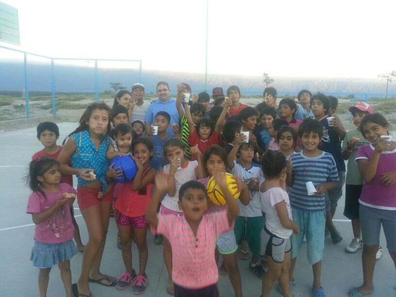 jugaban en el sector entregándoles pelotas de futbol y demás elementos para que