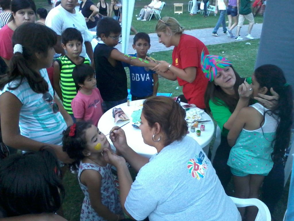 entregas de folletería, agua, maquillaje artístico a los niños presentes y