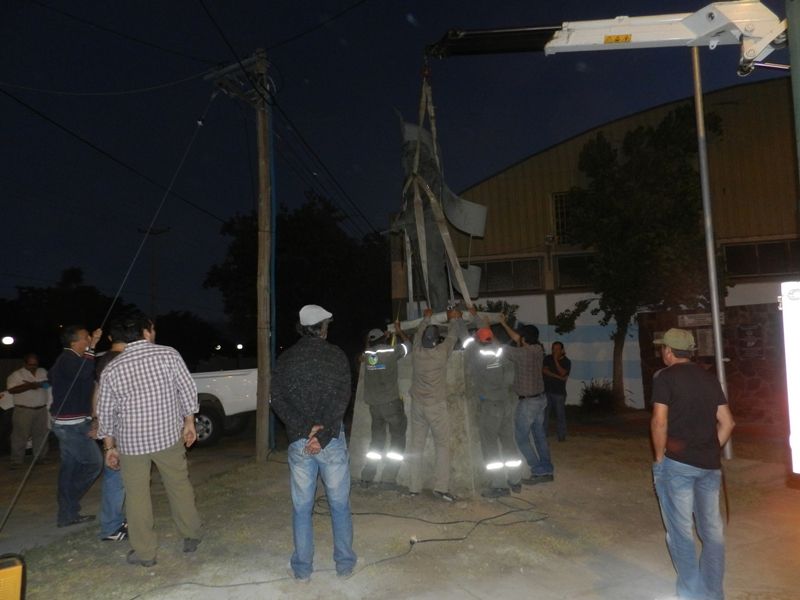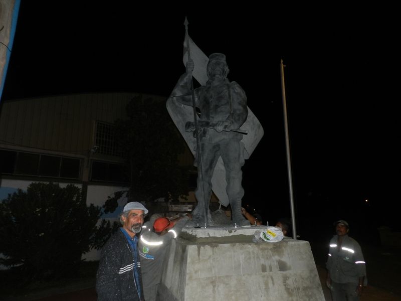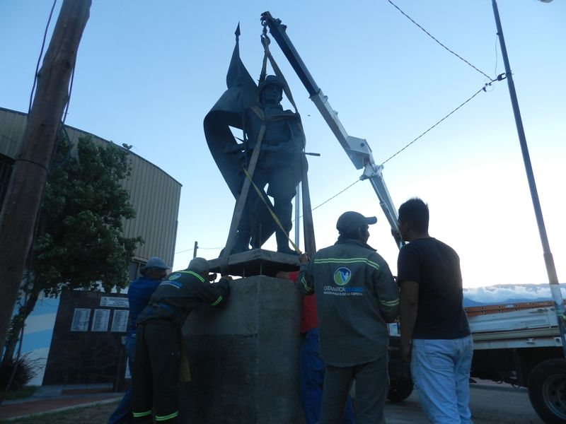 con el monumento especialmente traído desde Alta Gracia, obra del artista