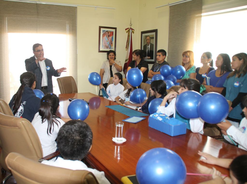 insignias y globos azules, con el objetivo de promover el Día Mundial de