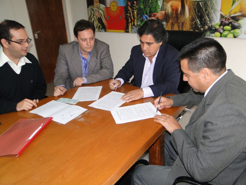 La firma estuvo a cargo del ministro Raúl Chico, el intendente de Pomán Francisco Gordillo y el presidente de AICAT Alberto Natella.