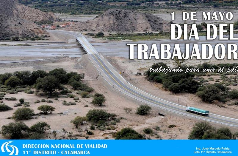 Mediante una tarjeta, el administrador del 11º Distrito Catamarca de la DNV, Ing. José Marcelo Patria, envió un saludo a todos los trabajadores argentinos en su día, y en especiales a los viales nacionales por su labor cotidiana, “trabajando para unir al país”, precisó.