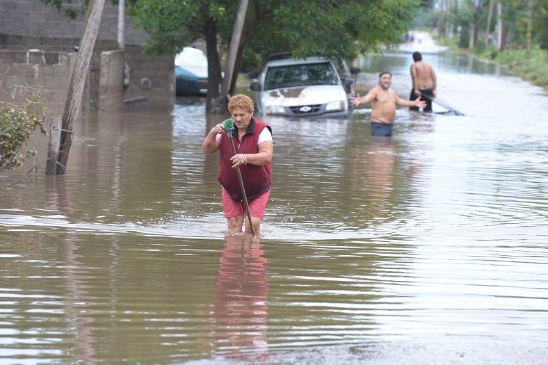 Apenas se notificó de las inundaciones, la mandataria emprendió viaje hacia la zona afectada, donde arribó por vía terrestre a través de La Paz, ya que se encontraba cortado el paso en la Cuesta de El Totoral.