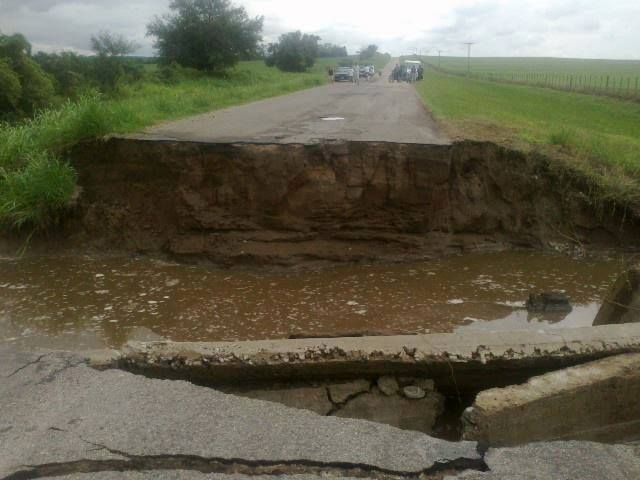 agua se llevó una importante sección del asfalto lo que está cortando el paso.