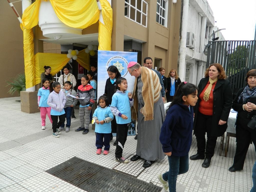 nombre de toda la familia escolar y les contó a los niños que el Obispo "es el