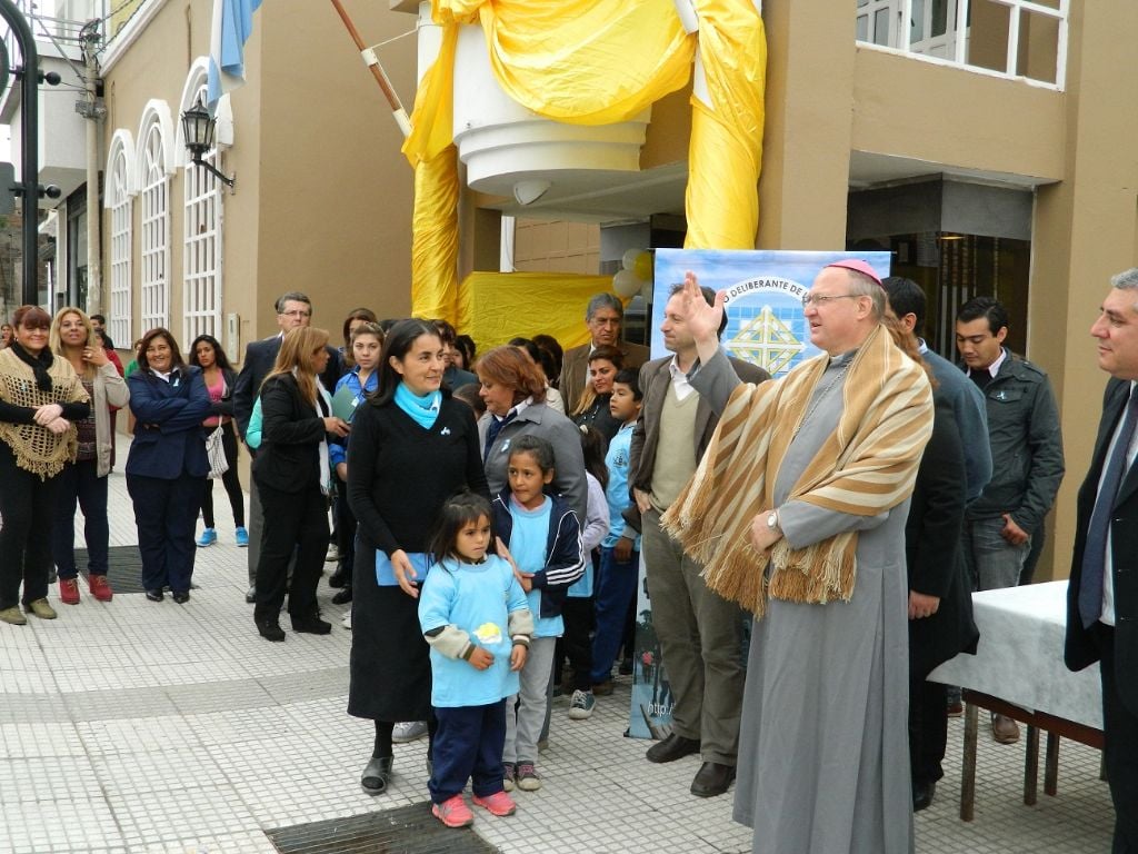 Luego de su paso por el palacio municipal, Mons. Luis Urbanc