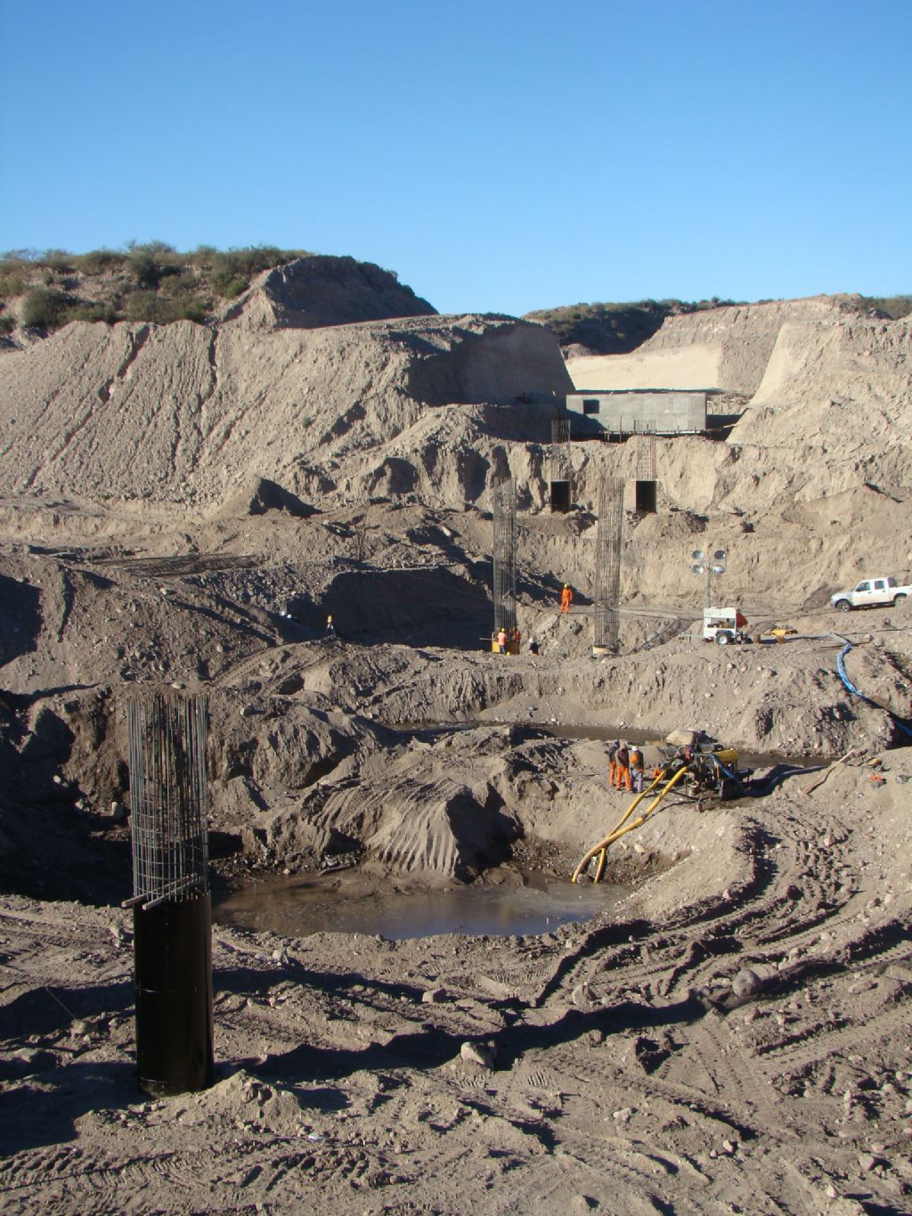 y levantamiento de pilas del puente sobre el río Los Nacimientos, emplazado