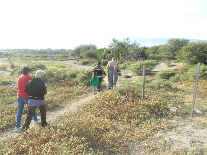 con los trabajadores y los niños del lugar, quienes se sumaban al recorrido con