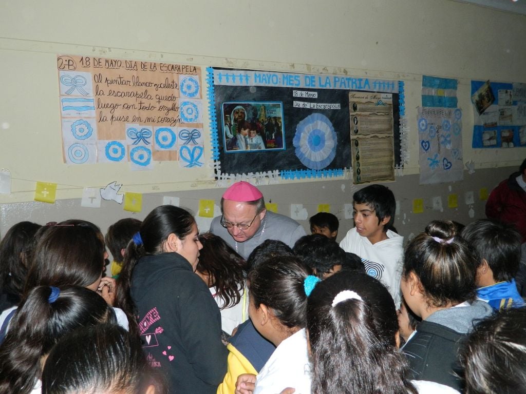 pastoral, el Obispo llegó a la escuela primaria N° 353 General San Martín,