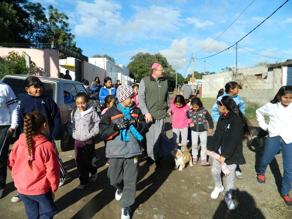 arribó al lugar, donde fue saludado por un grupo de vecinos, misioneras y los