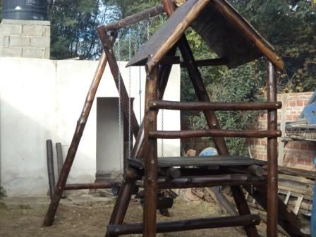hamacas y trepador, más un tobogán para niños, mientras que un mecedor