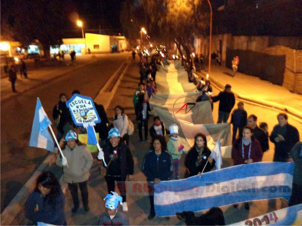 Numerosos niños portaron antorchas, pancartas, banderas y estandartes, con cánticos patrios y alusivos a la representación de nuestro país en el Mundial de Brasil.