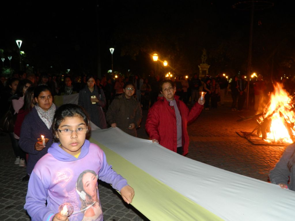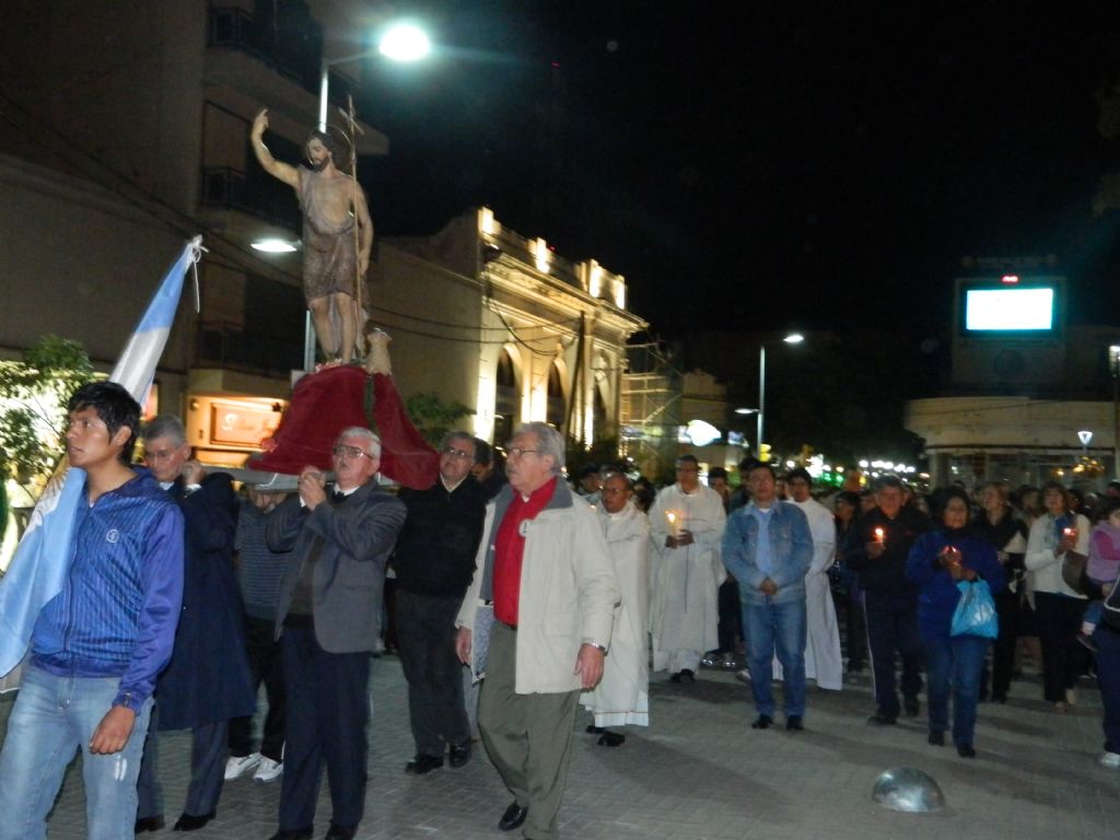 de la venerada imagen y caminaron alrededor de la plaza 25 de Mayo cantando y