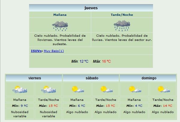 El fin de semana llegará con temperaturas muy bajas. Según el Servicio Meteorológico Nacional, las máximas no superarían los 15°, mientras que las mínimas estarán en el orden de los 5°. Se espera que cese el tiempo húmedo y no están previstas lluvias.