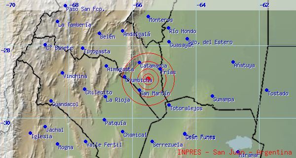 el epicentro se registró en la localidad de Chumbicha, en el departamento Capayán,