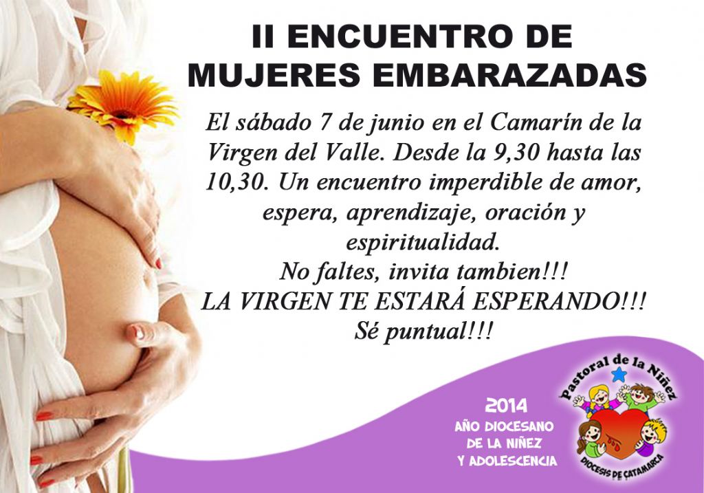 En el marco del Año de la Niñez y la Adolescencia, el sábado 7 de junio, se llevará a cabo el segundo encuentro de mujeres embarazadas, en el Camarín de la Virgen del Valle.